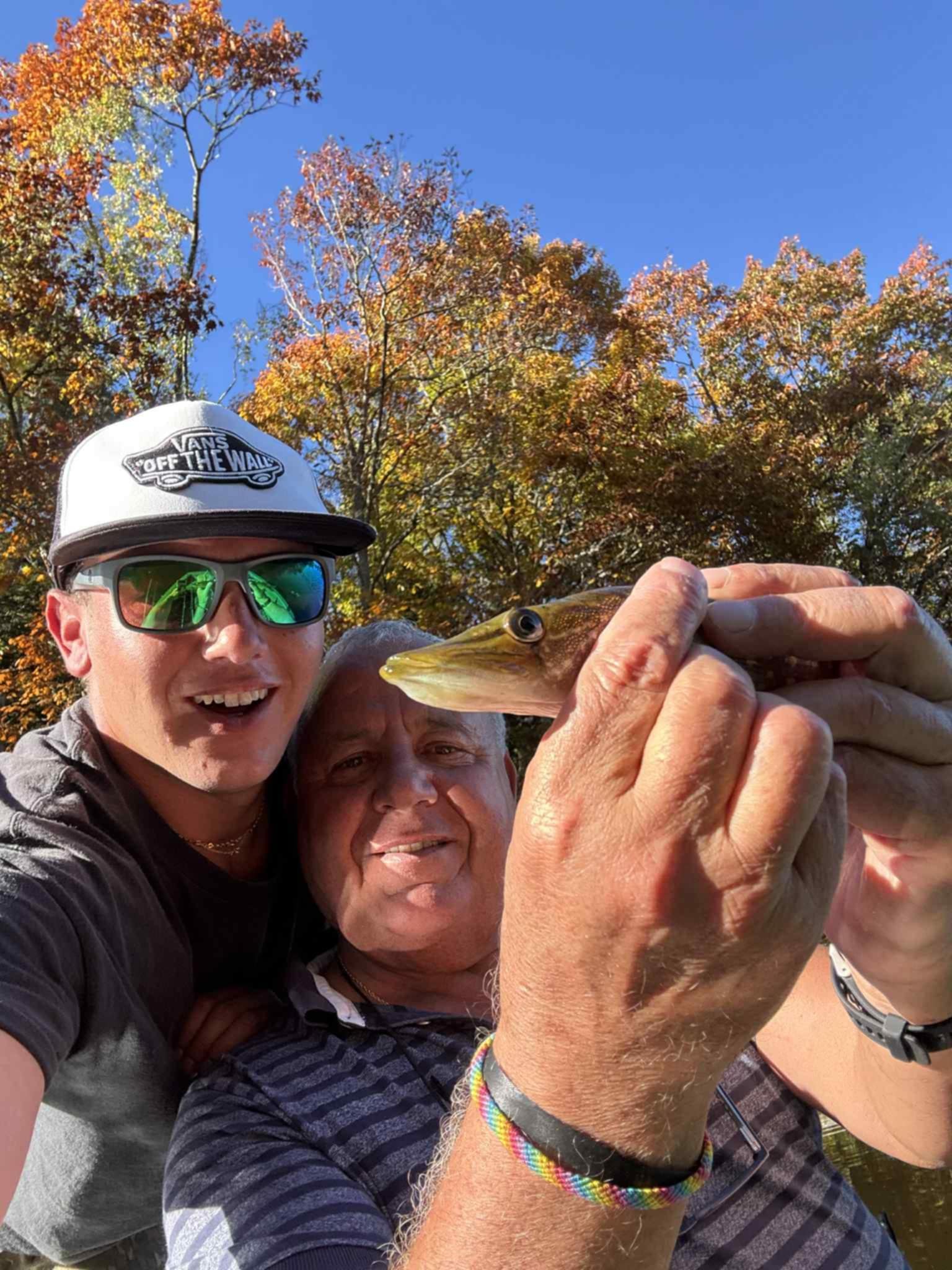 Philippe et Léo, Octobre 2025, semaine sous le signe du soleil, belle complicité père fils. joli brochet pour Philippe de 86 cm