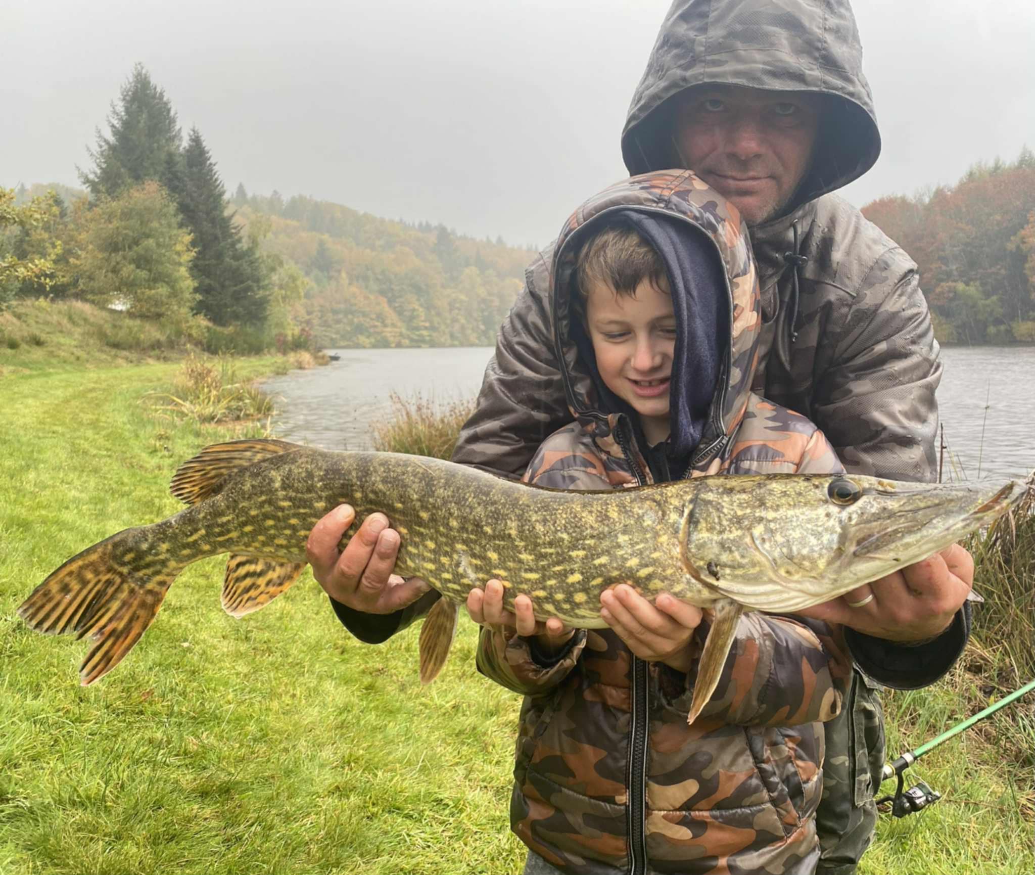 Philippe et Léo, Octobre 2025, semaine sous le signe du soleil, belle complicité père fils. joli brochet pour Philippe de 86 cm